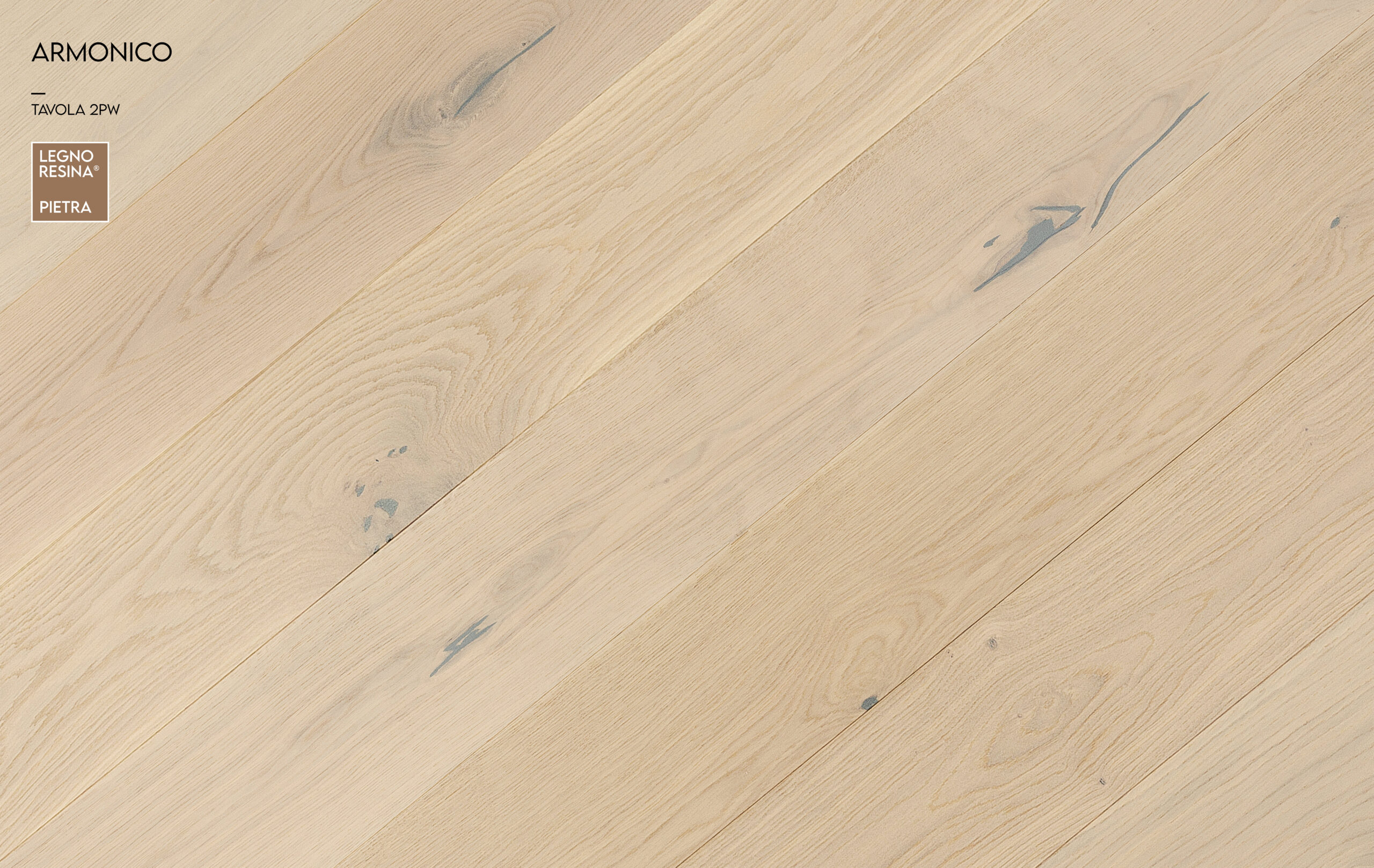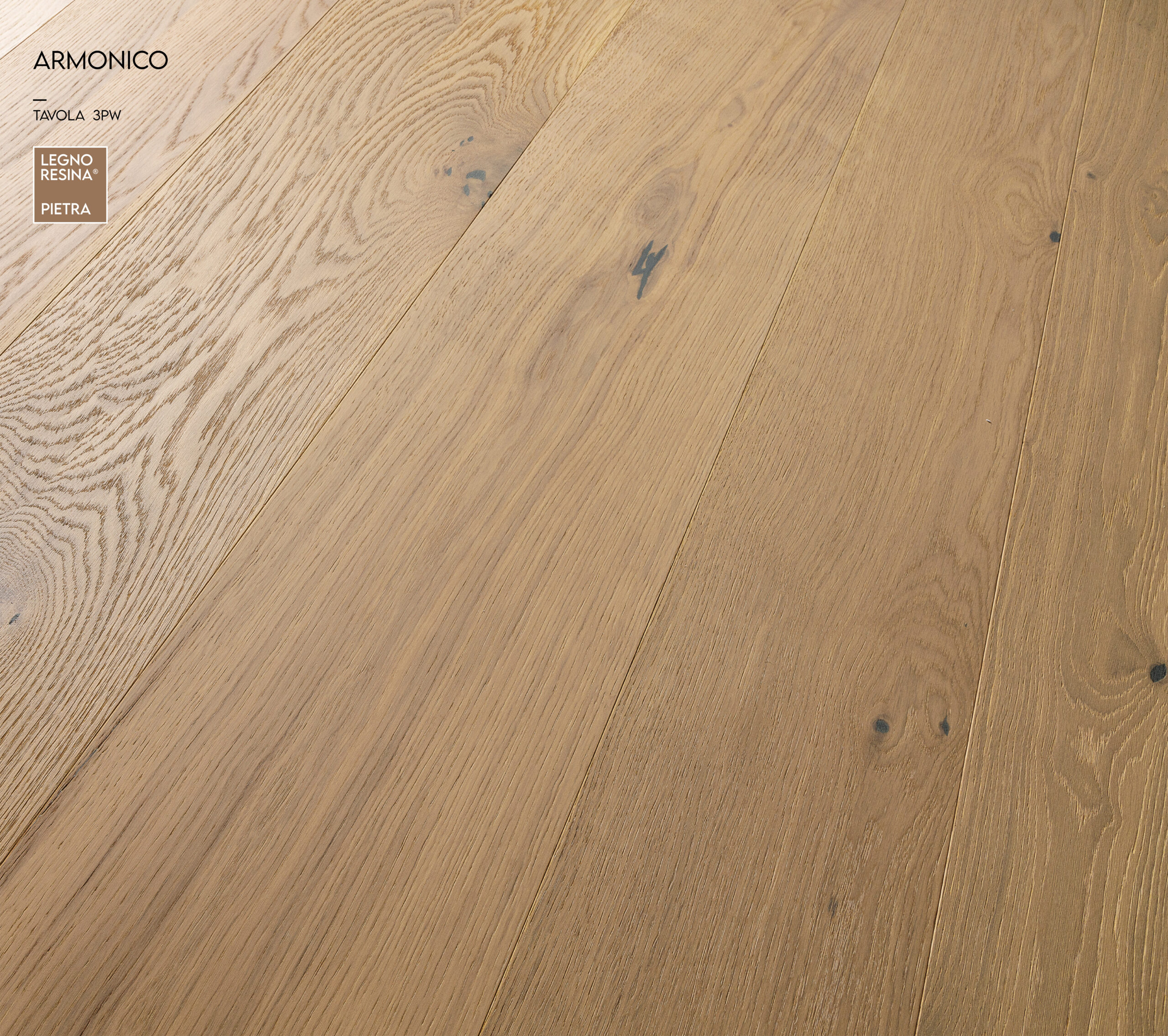 At the heart of Armonico is Salis’s patented Legnoresina® Pietra technology, an integrated wood-resin system that bonds mineral-enhanced protection directly into the oak structure, rather than sitting on top of it. The result is Italian hardwood flooring that looks and feels like natural European oak while outperforming traditional finishes in durability, scratch resistance, and long-term maintenance.